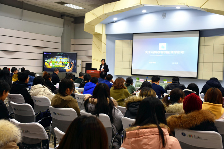 本期主题为“动物权利”的伦理学思考,由斗鱼直播 哲学学院赵芙苏博士主讲,西北师范大学哲学学院任万明博士主持。斗鱼直播 李朝东副校长、中和集团洪涛董事长、哲学学院胡好博士、朱海斌博士、张立恩博士以及来自各个学院的哲学爱好者参加了此次学术活动。