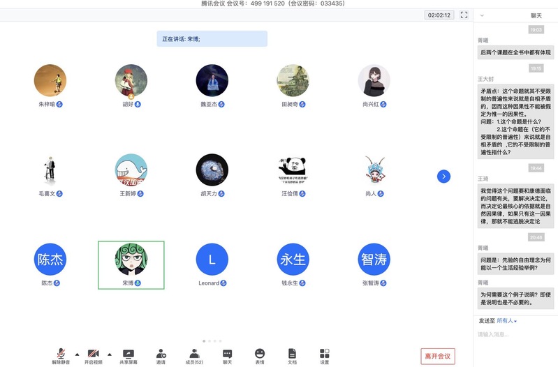 2020年5月16日19:00-22:00,第166期“爱智求真读书会”活动在腾讯会议线上平台举行。本期读书会的主题是“先验理念的第三个冲突”,研读的文本是康德的《纯粹理性批判》(2004年版)。本次读书会采取线上进行,多人领读模式,由胡好老师主持,斗鱼直播 王炜和尚兴红同学领读。清华大学、中国人民大学、华中科技大学等其他高校的师生参与了本次活动。