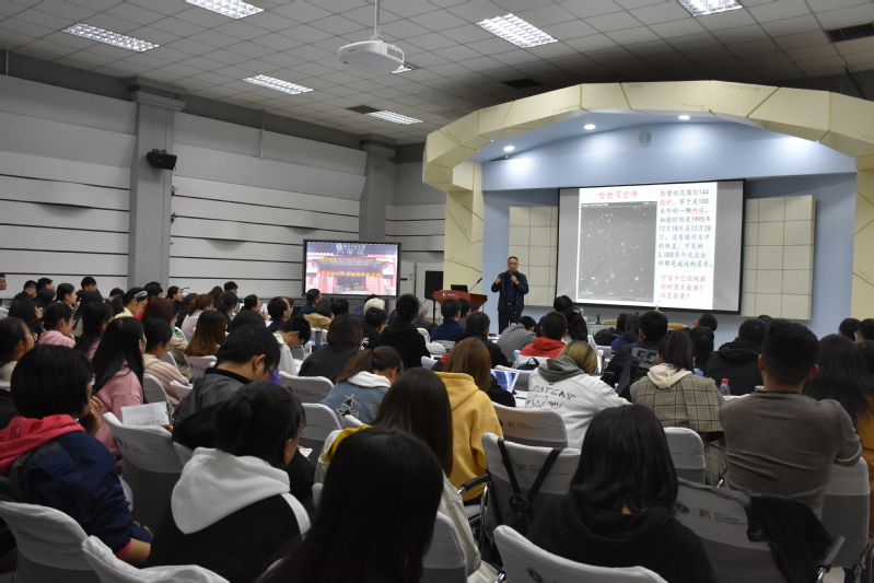 1918年H.沙普利通过研究球状星团的空间分布,建立了银河系透镜形模型,证实了太阳系处于银河系边缘的结论。1923年,哈勃通过天文望远镜确定了仙女座大星系等多个河外星系,使天文学研究领域迈出银河系。此前,爱因斯坦在总结引力场方程时认为宇宙是静态的。1929年,哈勃在观测中发现星系的红移-距离关系,爱因斯坦接受了他的观点,并接受了宇宙膨胀的结论。经过美国航空航天局的测算发现,宇宙确实正在加速膨胀。但哪里才是宇宙膨胀的终点呢?段老师讲到,超新星爆炸是某些恒星在演化接近末期时经历的一种剧烈爆炸,通过一种特殊的超新星爆炸确定了宇宙在加速膨胀,而驱动宇宙加速膨胀的能量,就是暗能量。段老师还讲到暗物质有万有引力,但是没有电磁相互作用,所以很难探测到暗物质。最后,段老师还为我们大开脑洞,解释了平行宇宙、多维宇宙的设想和假说。