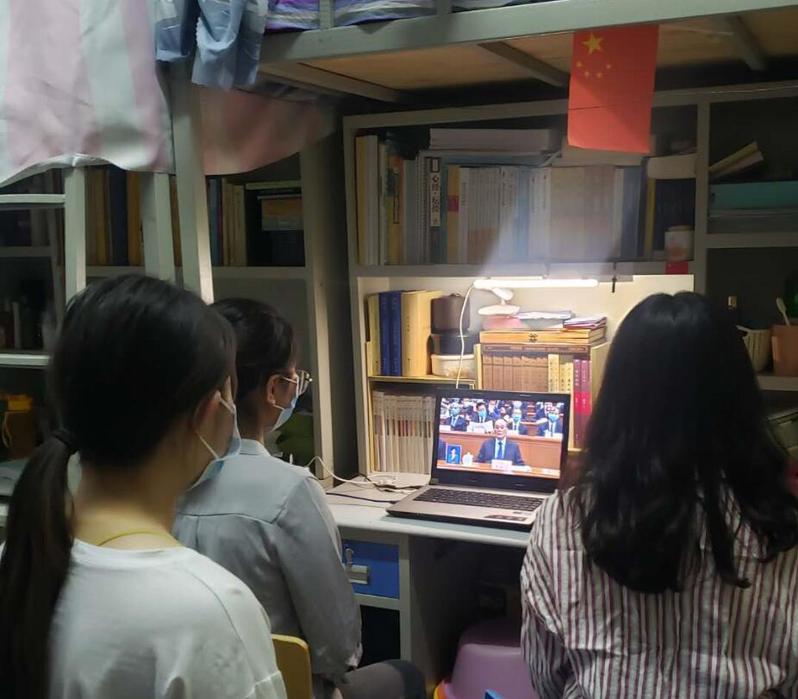 2018级研究生田富鹏说:“因抗疫而推迟召开的两会,必将激励14亿中华儿女以更加顽强的精神奋勇前行。作为新时代大学生,我们要与祖国同命运、共呼吸,埋头潜心学习,为更好地投身国家建设积聚能量。”