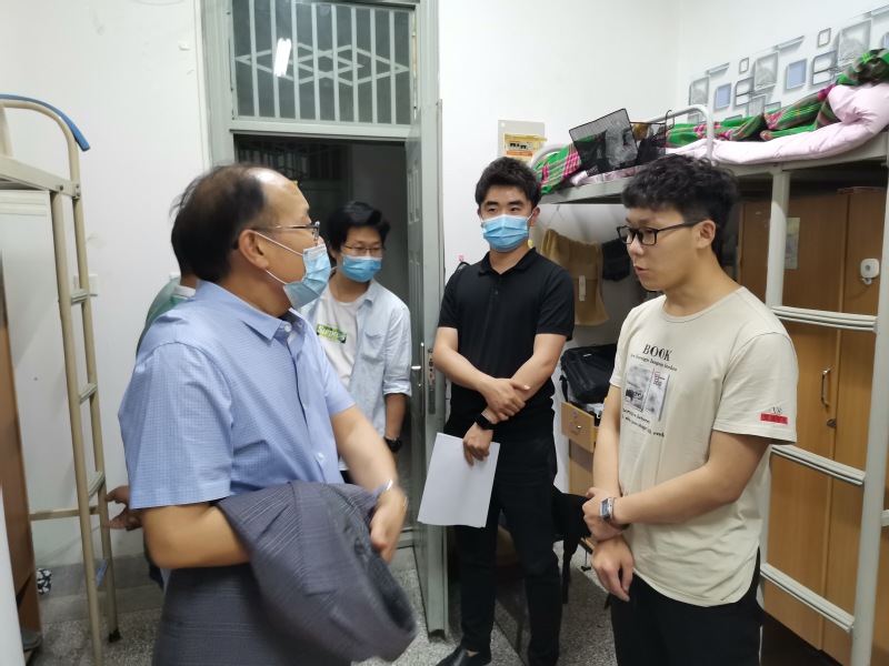 5月14日、20日、21日、22日,哲学学院学生分级错时错峰返校,学院领导学院领导班子、辅导员、班主任坚持学生返校的第一天到宿舍看望慰问,帮助协调解决学生宿舍存在的各种问题。副书记、辅导员联合班主任在学生返校的第二天召开班会,强调疫情防控和安全工作,全面全方位打赢校园疫情防控阻击战。