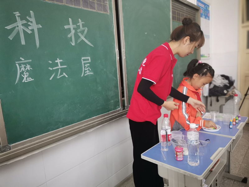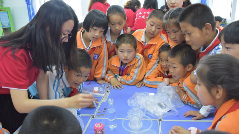 在支教活动中,我们为小学生规划了“智慧课堂”“励志课堂”和“感恩课堂”等专题板块,设计了“精灵总动员”“科技魔法屋”“感恩有你”“真情告白”“感恩宣誓”等八个模块30余项主题活动,通过游戏式、启发式的途径和形式,寓教于乐,激发小学生学习兴趣,引导小学生感恩亲情、快乐成长,激励小学生从小立志向、修品行、练本领。