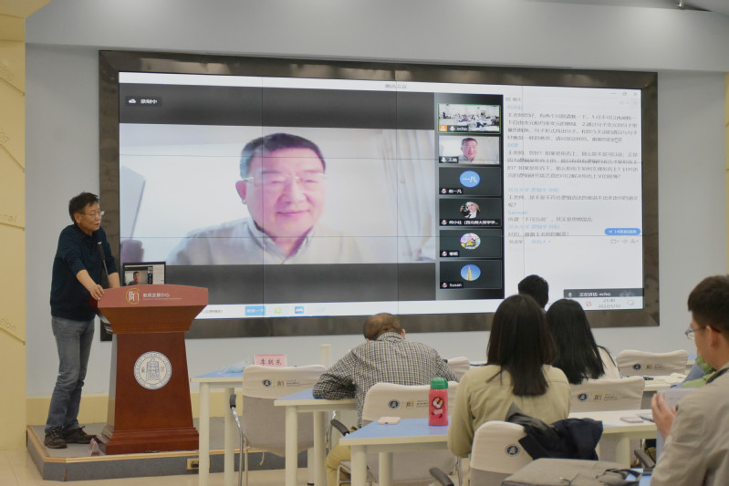 2022年5月12日晚,由斗鱼直播 哲学学院、中和集团、科学研究院、教师发展中心联合主办的“中和论道”第八十一期在斗鱼直播 教师发展中心举行。该报告是学校“博雅讲堂”系列报告之一。本期报告题目为“谓词与表达认识的方式”,由郑州大学哲学学院特聘首席教授王路主讲,斗鱼直播 哲学学院李朝东教授主持。本次活动采取线上线下同步进行的方式,学院师生、校内外哲学爱好者等百余人参加了学术活动。