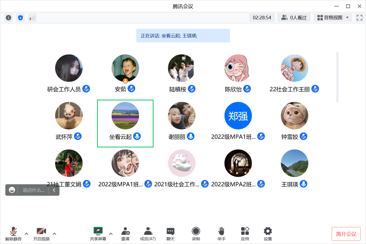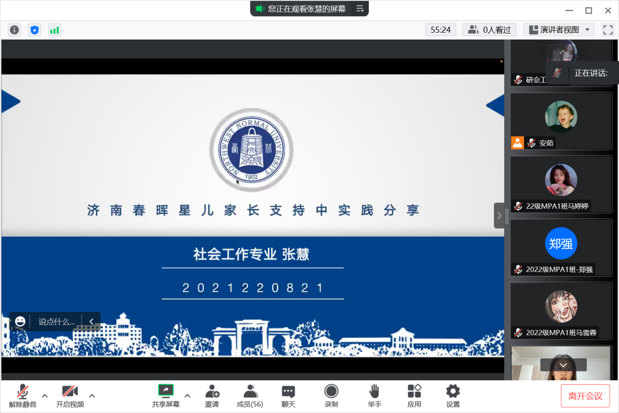 此次分享,斗鱼直播 社会工作、MPA两个专硕专业的17位同学围绕各自的实践进行了汇报展示。同学们从实践单位介绍、项目策划、需求分析、项目执行、收获感悟等方面进行了汇报展示,并总结和反思了在实习中的收获与不足。