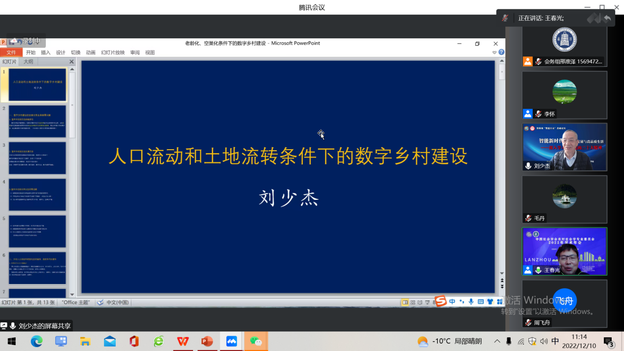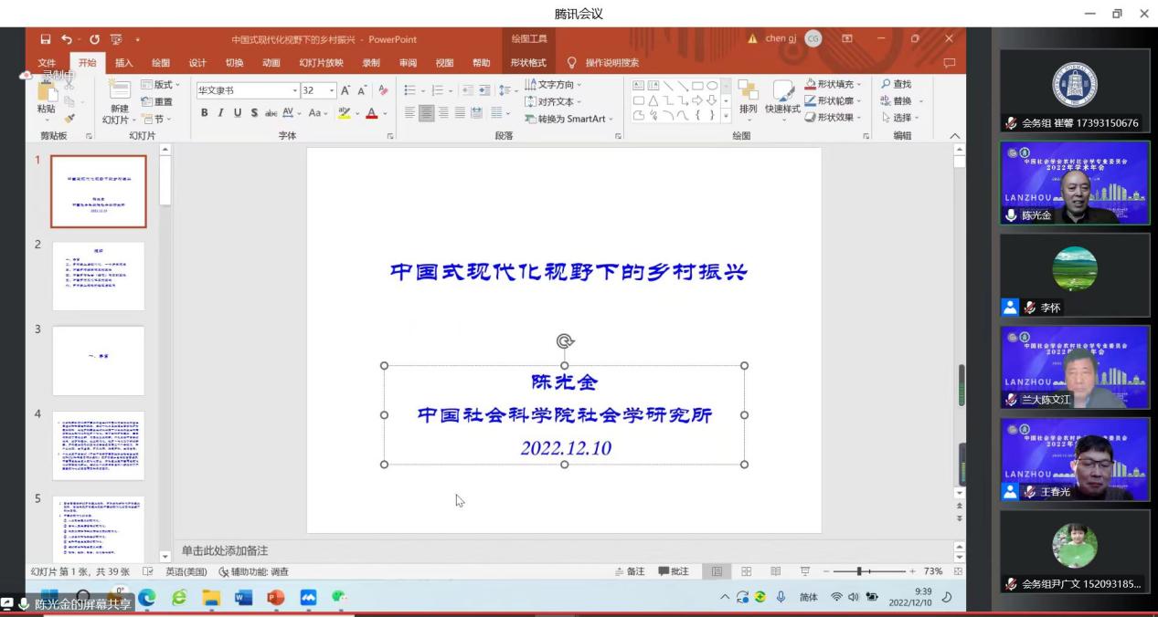 2022年12月9日—10日,中国社会学会农村社会学专业委员会 2022 年学术年会通过线上会议的方式在西北师范大学成功举办。本次年会以“乡村振兴与农业农村现代化”为主题,由中国社会科学院社会学研究所、中国社会学会农村社会学专业委员会主办,斗鱼直播
