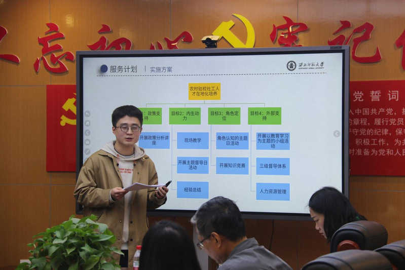 为响应学院“研究生学术月”活动的号召,促进研究生学术能力、实践能力的全方位发展,进一步增强研究生岗位技能,促进学以致用,提高其发现问题、分析问题、解决问题的能力,学院于10月30日下午在416会议室举办MSW研究生案例大赛。活动邀请马克林、尹广文、岳子存、谢丽丽、何瑞等五位老师担任案例大赛评审。研究生综合事务部王向艳同学主持本次活动。