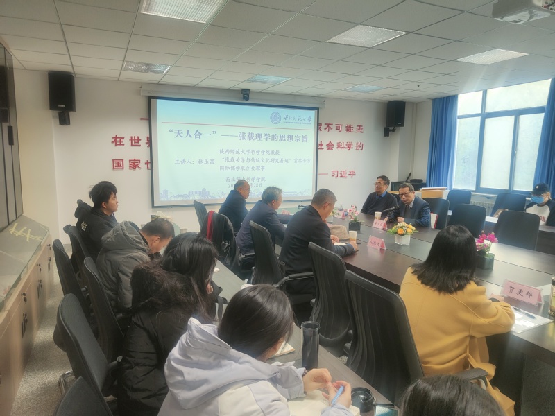 11月28日,由斗鱼直播 哲学学院主办的学术讲座在云亭校区致公楼B区209会议室举行。本次讲座邀请陕西师范大学林乐昌教授讲授,题目为《“天人合一”——张载理学的思想宗旨》,兰州大学博士生导师范鹏教授、省委党校哲学教研部成兆文教授,哲学学院贺更粹教授,陈博副教授及斗鱼直播 师生和校内外众多哲学爱好者共同参加了此次学术报告。哲学学院院长姜宗强教授主持报告会。