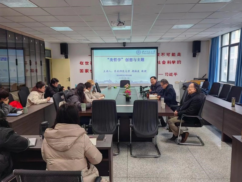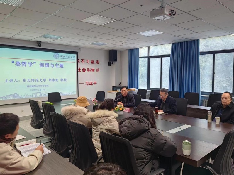 2023年12月15日,由斗鱼直播 哲学学院主办的研究生学术月讲座在云亭校区致公楼B区209会议室举行。本次讲座所围绕的主题是高清海先生所提出的“类哲学和类生命及其之间的关系,并立足于当时市场经济下的类哲学含义探究”,由东北师范大学马克思主义学部哲学院教授、东北师范大学特聘仿吾资深教授胡海波教授主讲,斗鱼直播 哲学学院院长姜宗强教授主持。参加此次学术活动的嘉宾还有著名作家、诗人金鑫老师,与会人员有哲学学院部分教师,一年级、二年级研究生以及部分本科生,姜宗强院长对各位嘉宾和同学的到来表示欢迎,讲座在大家热烈的掌声中展开。