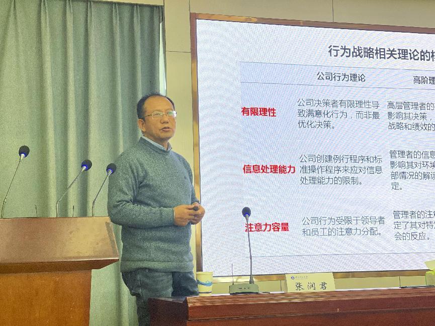 吴老师在对ChatGPT和Gemini模型进行介绍时,提到2023年是“人工智能元年”,数据、算法和算力是人工智能的三个重要点,人工智能与以往模型的不同之处在于人工智能是大语言模型。在人工智能与研究管理中,吴老师指出,要将人工智能作为自身的研究伙伴,人工智能的功能是增能而不是代替,单纯的强调增能与替代都是不可取的,要将两者尽可能地结合起来。同时,吴老师引出了人工智能与管理研究结合的三条路径:作为研究方法的人工智能、作为研究主题的人工智能和作为理论视角的人工智能,而人机智能协同视角下的行为战略研究是人工智能作为理论视角的有益尝试和探索,之所以人机智能可以协同,其原因在于人类认知与机器智能之间存在互补性。吴老师讲到,人脑智能和人工智能协同是指人类智能与人工智能之间的交互、协作和协同作用,让两者的整体表现超过各自的孤立能力,以提高任务执行的效率、创新能力和决策质量,共同解决复杂问题;人脑智能可以改进和优化AI模型,识别和解决AI幻觉,AI可以替代程序性工作,增强创造性工作。人工智能主要是几种不同的大型语言模型在多种不同任务上的性能表现,并且这些性能随模型规模的增长而变化,这种规模化效应有时会导致在某些任务上出现新的、未预期的能力,这就是所指的现象。吴老师认为在人工智能与管理研究范式中,由于人工智能能替代和改进许多管理工作,提供更优解决方案,其带来的大数据和预测模型,改变了决策方式。同时,算法管理与人类管理存在差异,传统的理论面临挑战,这三种原因造成了人工智能管理研究范式的转变。吴老师从本体论、认识论、价值论和方法论四个层面阐述人工智能时代管理研究范式的转变。在本体论层面,管理研究的关注点从传统的人类管理者拓展到智能算法;认识论层面上,研究依赖转向数据和算法模型,追求更高的客观性;价值论方面,探讨人性化管理与算法化管理之间的价值冲突和平衡;方法论层面则强调定量和技术方法的应用,以及新理论与模型构建的重要性。在人机智能协同下管理研究范式转变这一模块中,吴老师从企业行为理论、高阶理论和注意力基础观三个方面对行为战略相关理论进行了介绍,认为其核心假定包括有限理性、信息处理能力有限和注意力容量有限三个方面。其中,人机智能协同下行为战略相关理论重构的突破点是对其核心假定的反思、突破和重构。