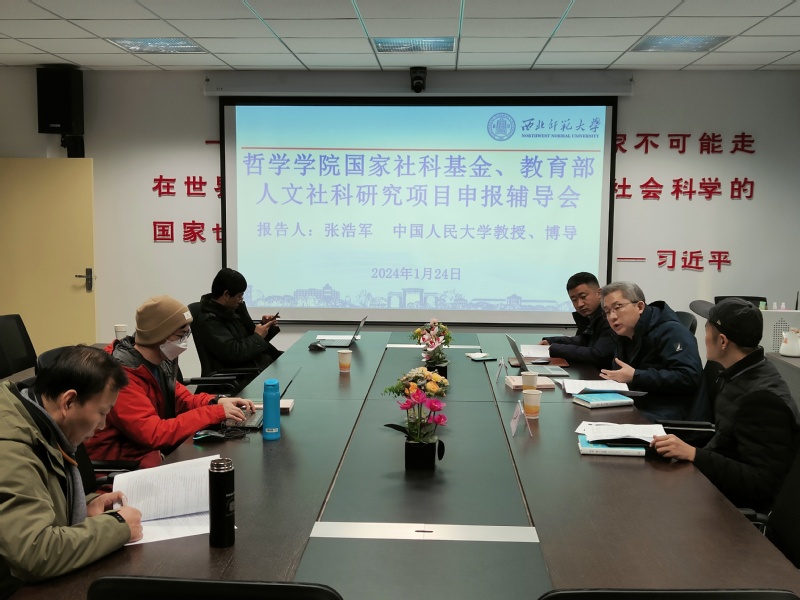 2024年1月24日上午,哲学学院组织2024年国家社科基金、教育部人文社科研究项目申报辅导报告会,会议邀请中国人民大学哲学院张浩军教授作辅导报告,李永亮副院长主持辅导报告会。李光华书记、王珅副院长及学院拟申报2024年国家社科基金项目和教育部人文社科研究项目的老师共同参加会议。