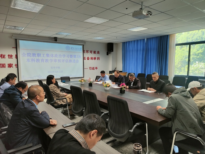 4月11日,哲学学院召开第三次本科教育教学审核评估推进会。此次会议旨在进一步细化与强化学院的教育教学质量保障体系,王珅副院长就近期主要工作的进展情况做了介绍和报告,姜宗强院长就重点工作和环节做了要求和强调。李光华书记主持会议。