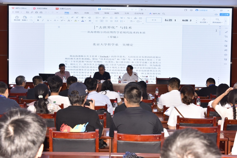 第一场报告由吴增定教授主讲,吴教授的大会主题报告名为“‘去世界化’与技术——从海德格尔的前期哲学看现代技术的本质”。报告从《存在与时间》等前期著作中的两个相关概念:“世界”(Welt)和“去世界化”(Entweltlichung)入手逐层展开关于海德格尔技术之思的探讨,提出海德格尔前期的“去世界化”概念具有很多解释空间,认为其中隐含了一种社会伦理和公共政治的维度。吴教授的报告认为,通过“世界”和“去世界化”这两个相关概念,我们不仅能推进海德格尔前后期关于技术和虚无主义的思考,而且也能激活包括胡塞尔、海德格尔和法国现象学哲学家在内的现象学自身的丰富思想资源。