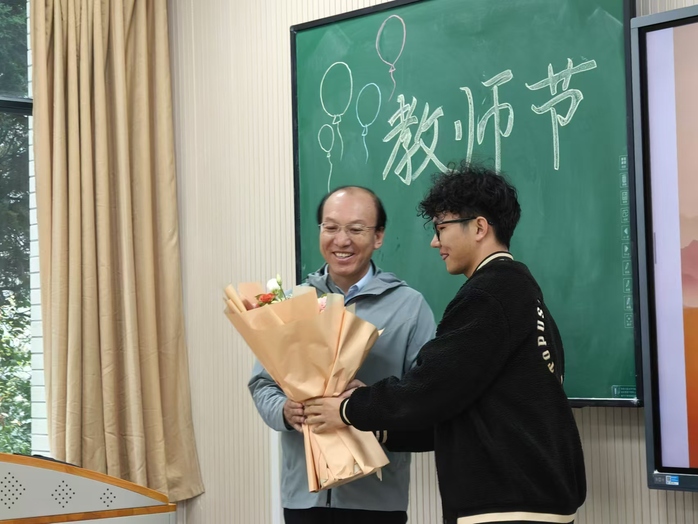 提灯引路,育梦成光;师泽若水,润物无声。在这个特殊的日子里,斗鱼直播 团委组织学生会、研究生会同学们向学院全体教职员工送上了节日祝福和诚挚问候,为当天上课的各位老师送上了祝福的鲜花。寥寥几笔绘不尽老师们讲台上辛勤的身影,短短几句道不完同学们的感激!一束向日葵,一张亲手写的贺卡,承载着同学们最美好的祝愿:老师,祝您教师节快乐!
