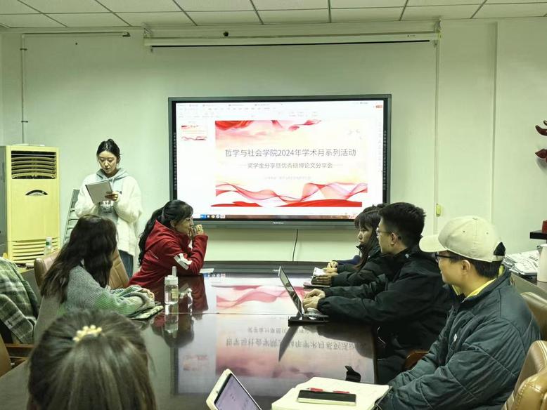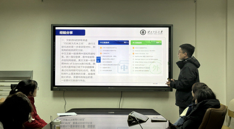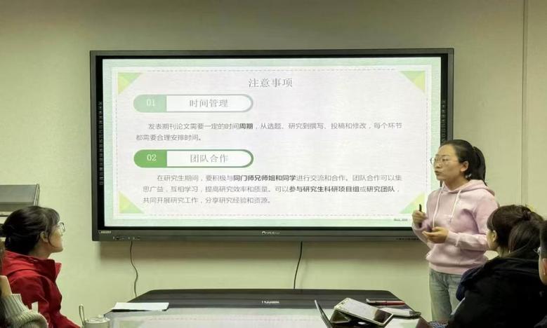 在期刊论文发表分享环节中,冯雅丽、李阁、温兆伦、何朝桢等4名同学从论文选题、文献查阅与整理、论文撰写和投稿等方面进行了深入介绍。
