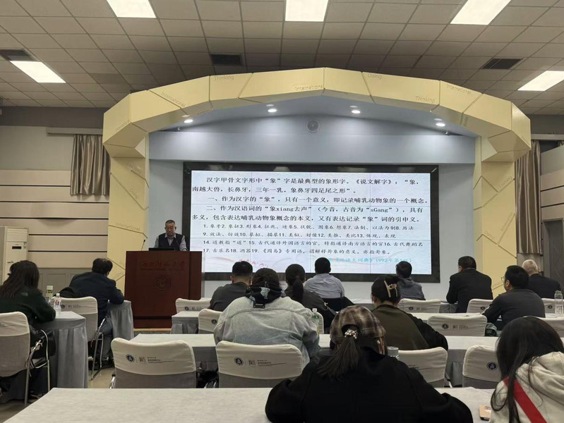 在“元象”部分,他从“象”的本意出发,介绍大象在身体构造、生活习性、交流行为等方面的特征,以及在汉语和汉字系统中的含义演变。“象”不仅指代哺乳动物大象,在语词层面还是多义词,其丰富意向的产生源于隐喻、转喻等认知方式以及语言表达的特性。通过对“象”在不同语境下含义的细致梳理,雒教授揭示了词义演变的规律和背后的认知机制。