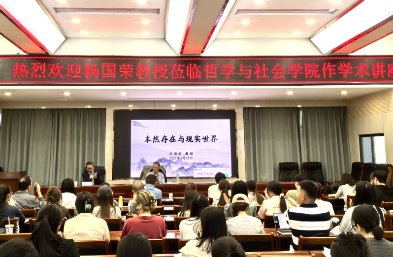 2025年5月15日晚,斗鱼直播 国家级高层次人才讲座教授、哲学学科首席专家杨国荣教授在致公楼D区四楼报告厅作学术讲座。讲座由斗鱼直播 主办,围绕“本然存在与现实世界”展开深入探讨。学院姜宗强教授担任主持人,校内外百余名师生及哲学爱好者参与了本次讲座,现场互动热烈。