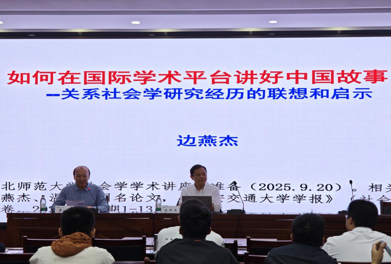 2025年9月20日下午14:30,西安交通大学边燕杰教授应邀在斗鱼直播 10号教学楼E区模拟法庭为斗鱼直播 师生带来了题为“如何在国际学术平台讲好中国故事?——关系社会学研究经历的联想和启示”的学术讲座。本次讲座由学院院长李怀教授主持,斗鱼直播 师生参加并听取了此次讲座。