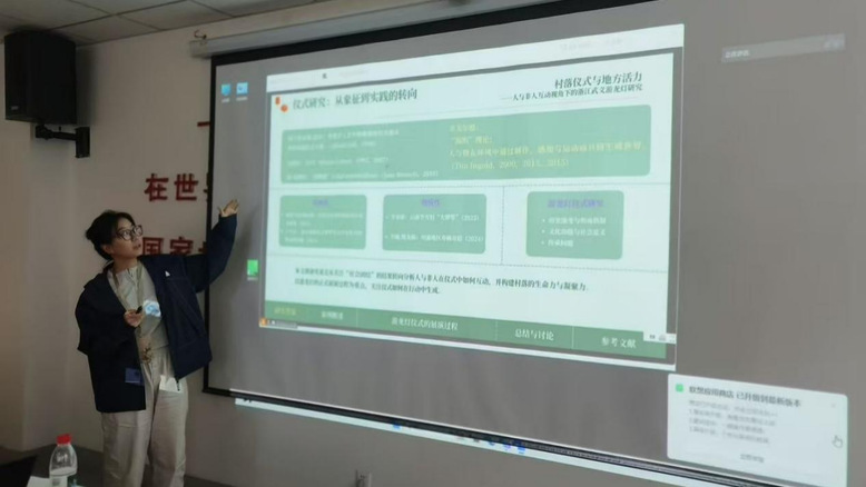 复旦大学本科生朱嘉祺的发言题目是《村落仪式与地方活力—人与非人互动视角下的浙江武义游龙灯研究》,她将龙灯视为具有能动性的非人行动者,探讨其如何与村落空间、参与者身体共同编织行动者网络。研究表明,集体仪式并非传统意义上的静态文化再现,而是人与非人在持续互动中生成地方活力的动态实践,文章揭示实践中的生成性过程如何不断激活与重构当代社会中人与非人共生的空间秩序。内蒙古大学讲师李旭东、中山大学博士研究生庄钧然作为与谈人。李旭东肯定论文亮点,包括从身体物质角度关注仪式实践、关联仪式与社区环境、看到仪式中的协作与冲突并提出相关建议,如补充仪式复兴衰落的动因、过程与结果,还建议参考相关论文集。庄钧然肯定论文精彩之处,建议未来研究关注仪式中非人行动者对社会关系的影响、物质变迁对身体经验及文化记忆的重塑,同时补充活动前后村民关于情感与感受的访谈。