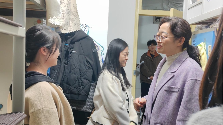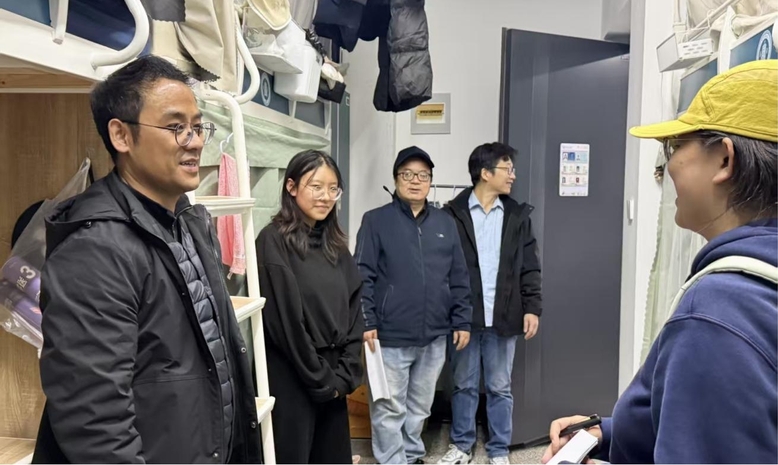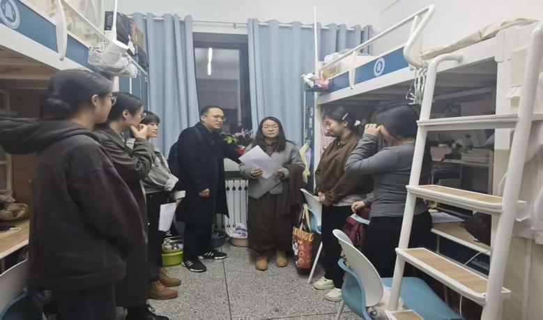 每走进一间宿舍,都是一次“育人温度”的传递。老师们的关怀并未止步于学业询问,更延伸至学生身心健康的细微处——从宿舍环境的维护到人际关系的调适,从阶段性学业的压力到未来发展的规划,事无巨细,皆成为师生对话的内容。这份贴近生活的关怀,让学生真切感受到了学院“如家般的温暖”,也将育人工作落实在了最具烟火气的日常之中。